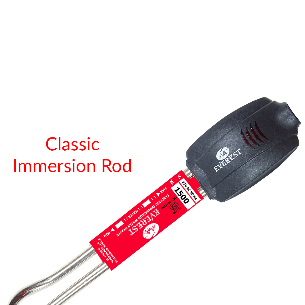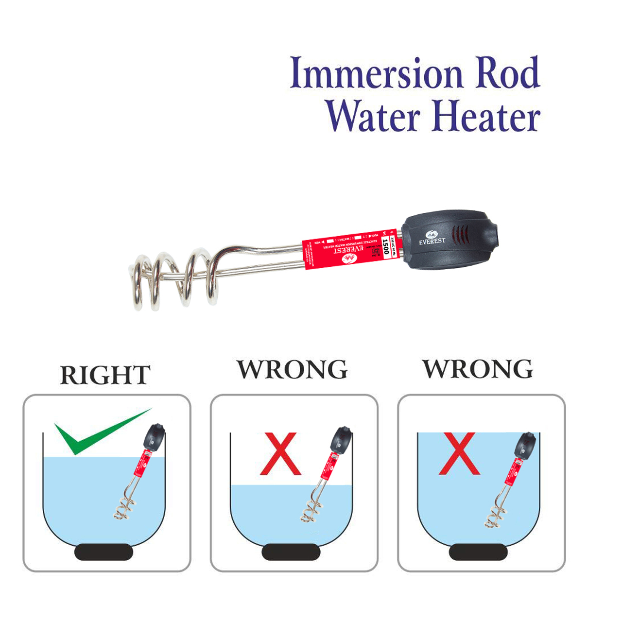 This immersion heater from Everest comes with a copper tube with a nickel outer covering. It has been specially designed for heating water quickly and consumes 1000W. The handle remains cool to touch even when the rod is hot.