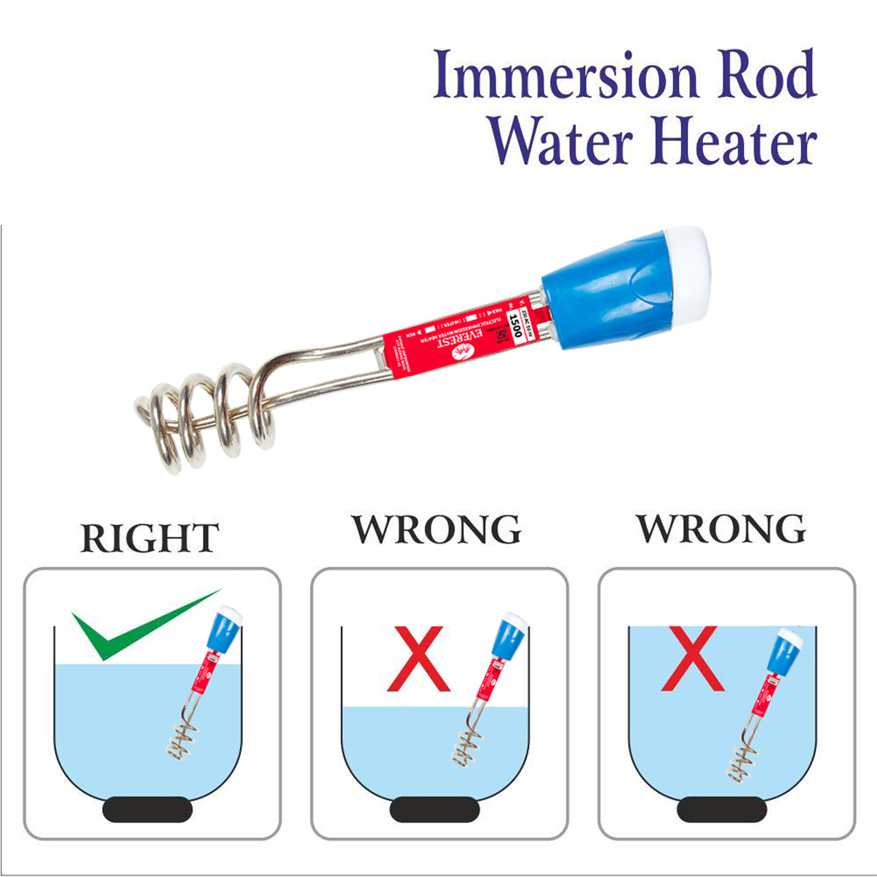 This immersion heater from Everest comes with a copper tube with a nickel outer covering. It has been specially designed for heating water quickly and consumes 1500W. The handle remains cool to touch even when the rod is hot