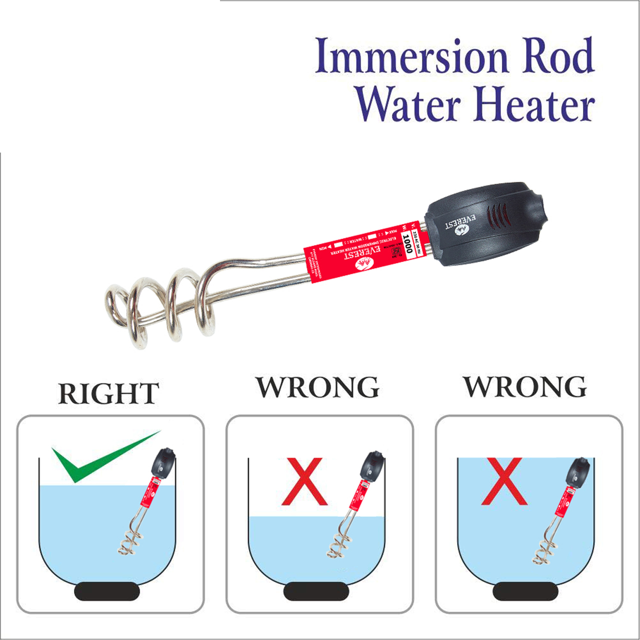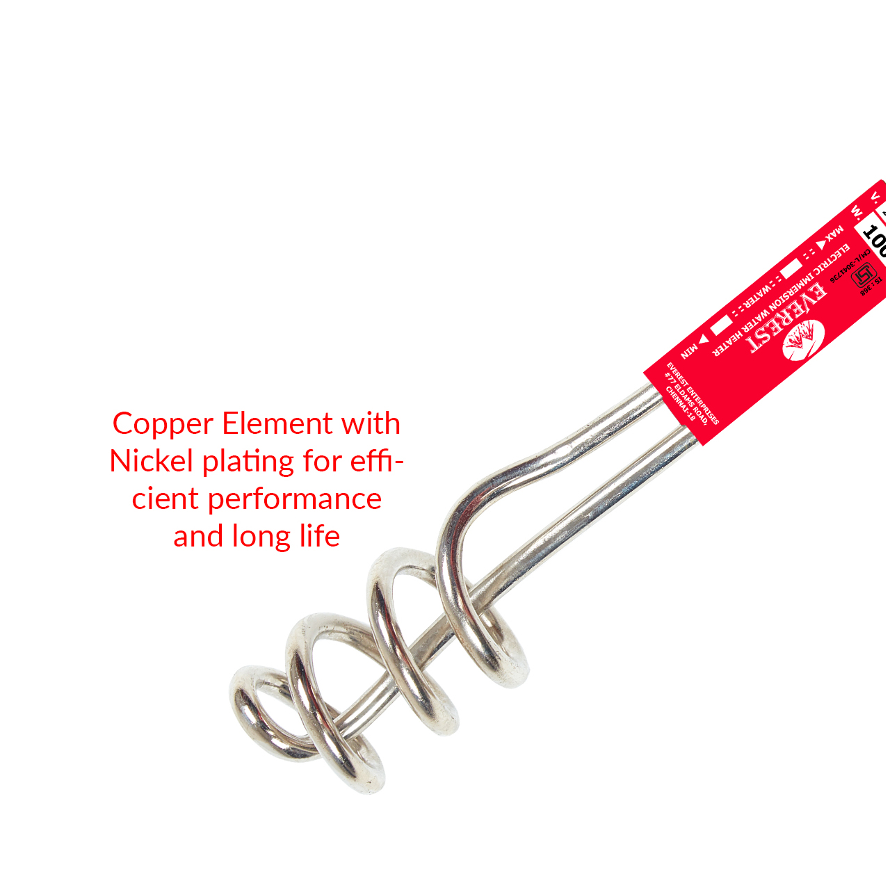 This immersion heater from Everest comes with a copper tube with a nickel outer covering. It has been specially designed for heating water quickly and consumes 1000W. The handle remains cool to touch even when the rod is hot.