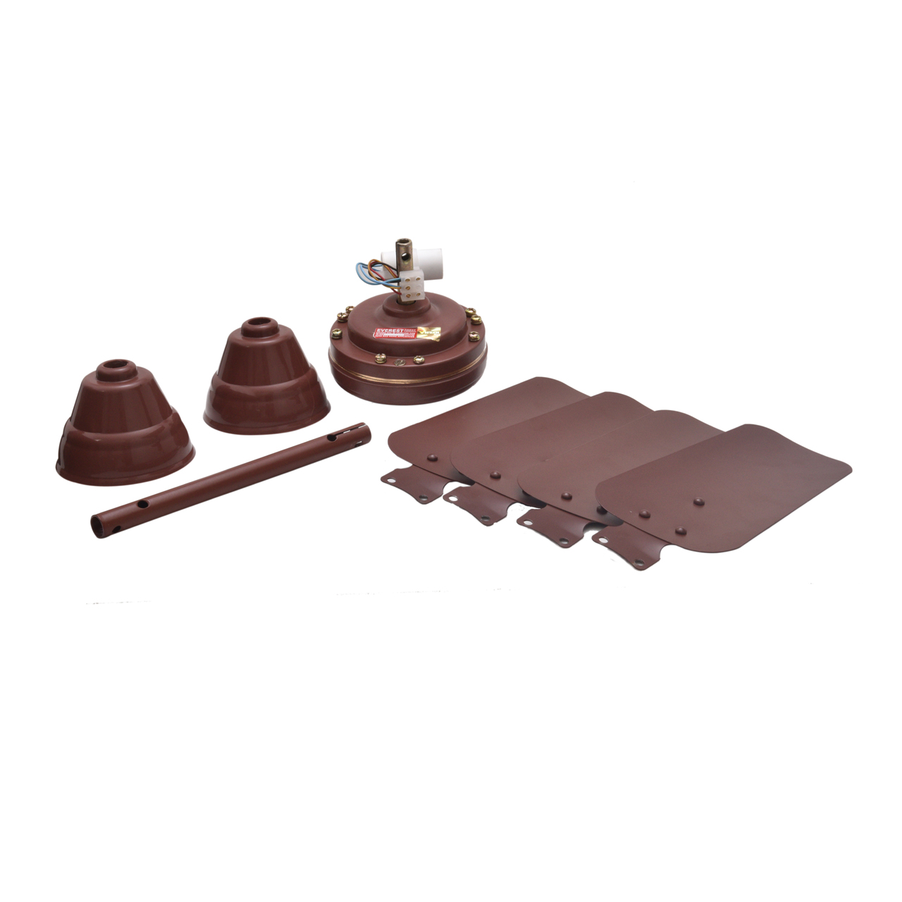 Package Content : 1 Set of Ceiling Fan including Fan Motor, Down Rod, Shackle Assembly Kit, 2 Piece Canopy (Top and Down), 4 Blades Set, Installation Manual